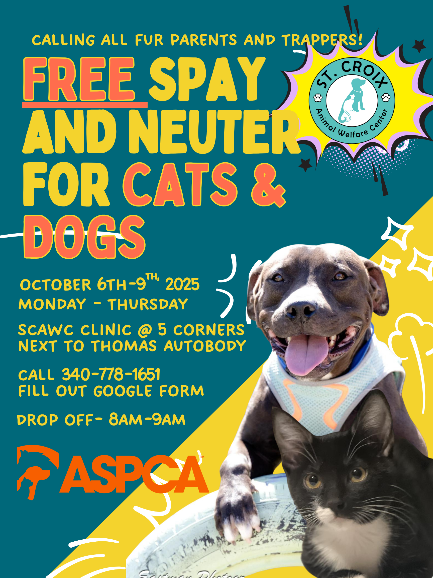 Views: 8602Calling all pet parents and trappers! We’re offering FREE spay and neuter surgeries for cats 🐱 and dogs 🐶 — thanks to support from the ASPCA! 📅 Monday, October